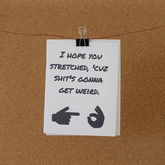 Funny Romantic Card: "I hope you stretched, 'cuz shit's gonna get weird."