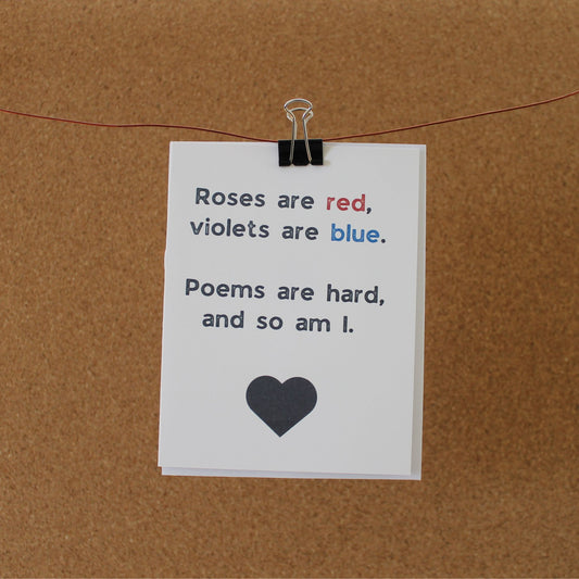 Funny Romantic Card (Poem 2): "Roses are red. Violets are blue. Poems are hard. And so am I."