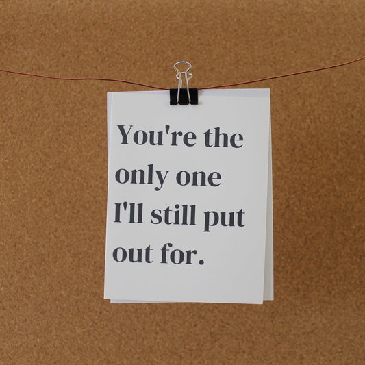 Funny Romantic Card: "You're the only one I'll still put out for."