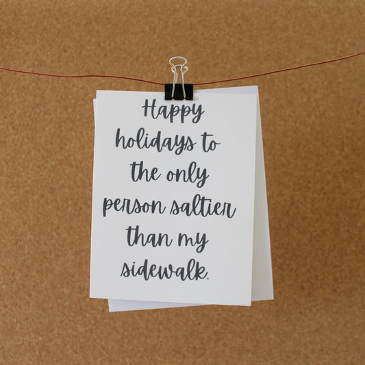 Funny Holiday Card: "Happy holidays to the only person saltier than my sidewalk."